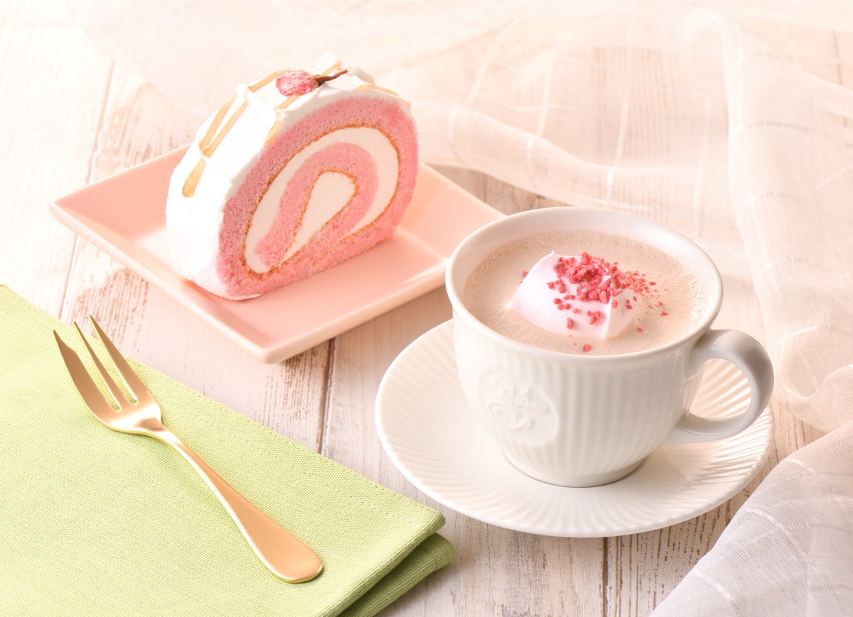 【カフェ・ド・クリエ】ひと足早い春の訪れ、さくらのミルク紅茶とさくらロールケーキが2月16日に登場!