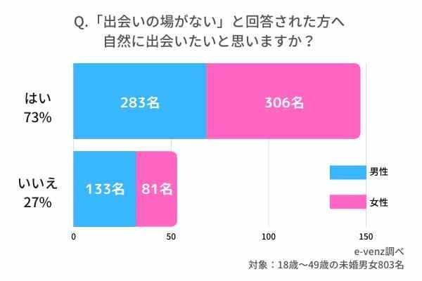 男性女性共に8割の方が、出会いの場がないと回答されています。