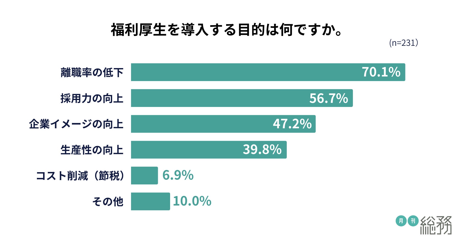 日本で唯一の総務専門誌『月刊総務』を発行する株式会社月刊総務(所在地:東京都千代田区、代表取締役:豊田健一)は、全国の総務担当者を対象に「福利厚生についての調査」を実施し、231名から回答を得ました。