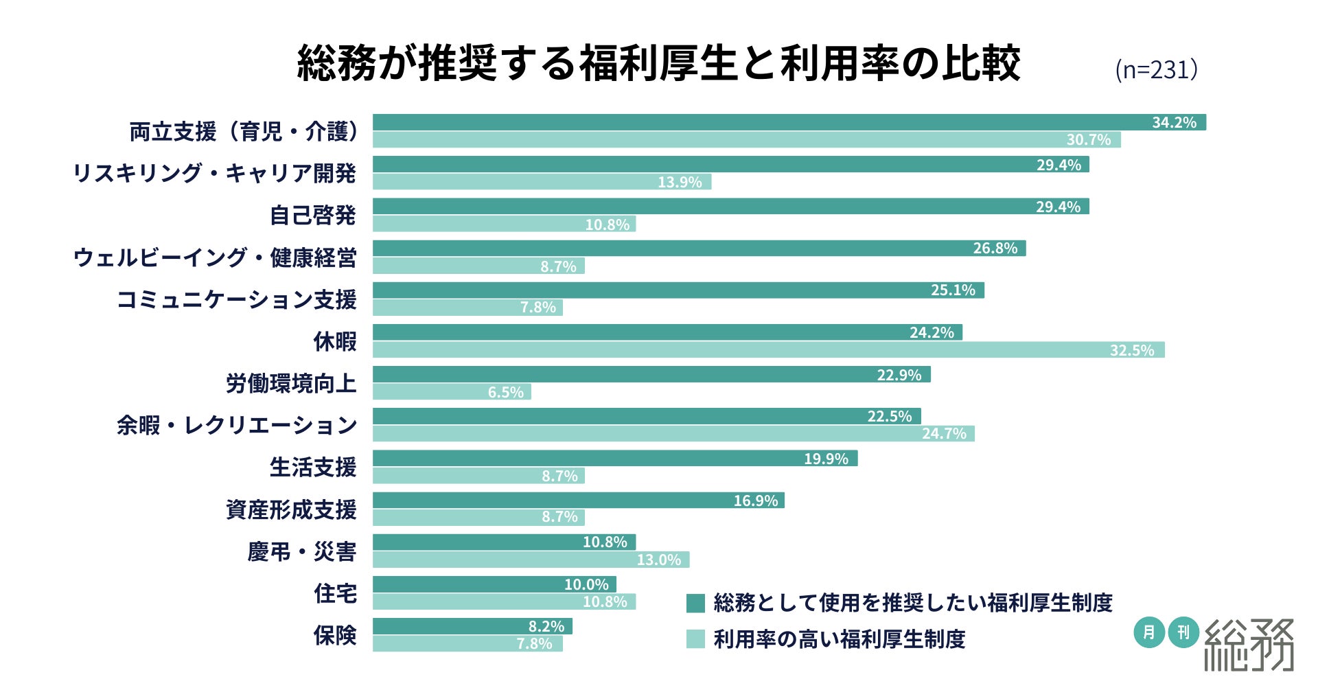 ■総務が利用を推奨する福利厚生と実際の利用率にギャップ