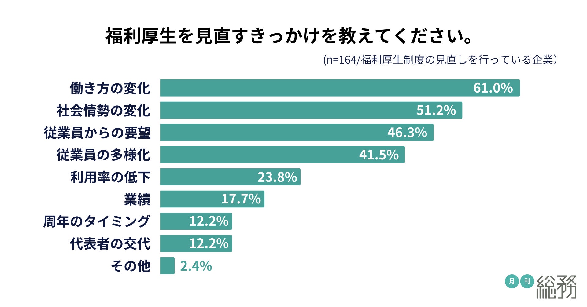 ・福利厚生の見直し理由は「働き方の変化」「社会情勢の変化」など
