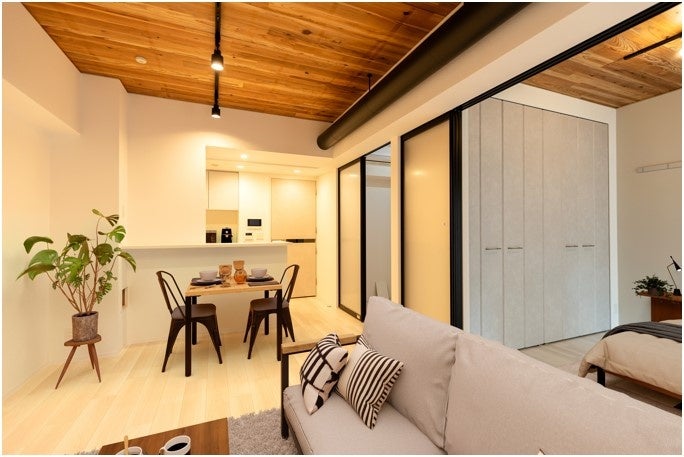 ①URBANEX天満橋South:関西賃貸マンション初、天井に天然木を利用し、開放感・明るさを感じる暮らし(一部フロア限定)
