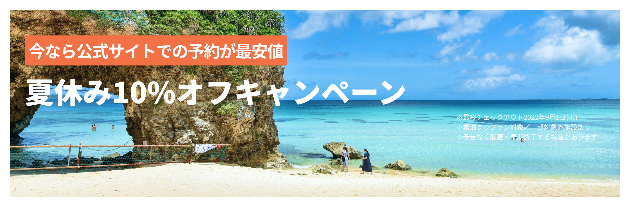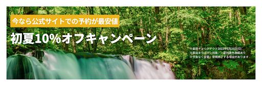 今なら公式サイトでの予約が最安値の10%オフで宿泊できる夏休み10%オフキャンペーンです。
