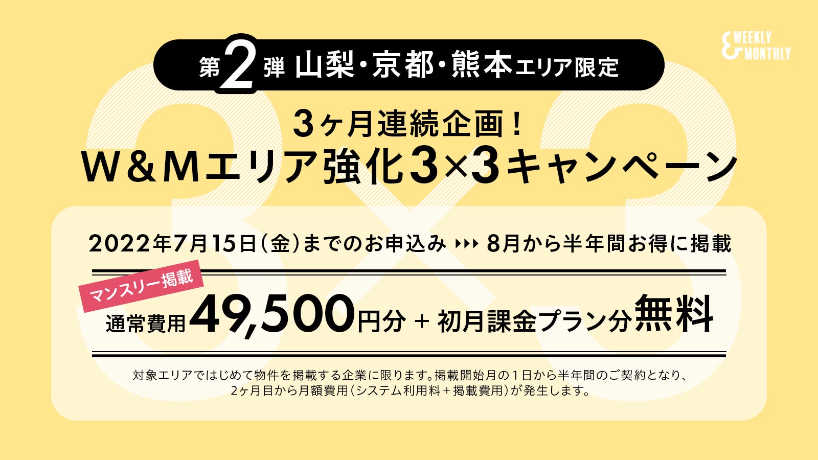 山梨・京都・熊本のW&M掲載が初月無料に!<3ヶ月連続企画>エリア強化3×3キャンペーン【第2弾】スタート
