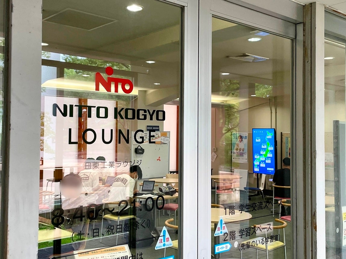 本施設は、学生が集い、語らい、学習することができるフリースペースです。1階を集いの場とする「動」の空間、2階を自学自習の場とする「静」の空間として多くの学生に活用されています。本施設の愛称は「日東工業ラウンジ」となります。ネーミングライツ取得に関する契約期間は、2024年8月1日から2027年7月31日までの3年間です。