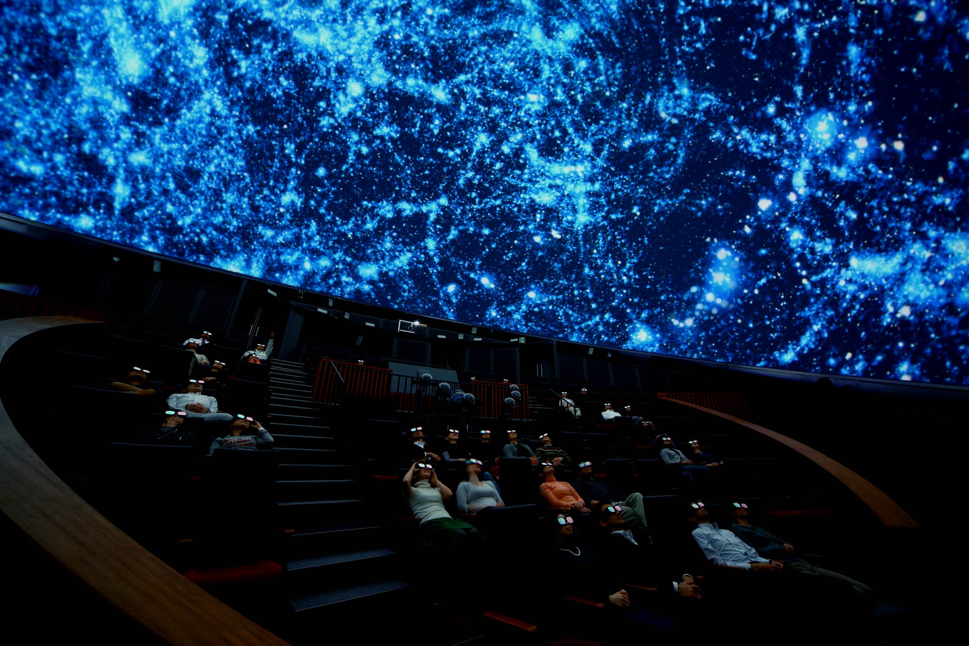 高輝度RGBレーザー4Kプロジェクター2台による全天周・超高精細立体視映像システムと連動したプログラムを上映することで、空気感や気配までも感じられるような、明るく鮮やかな映像をドーム型スクリーンに映し出します。