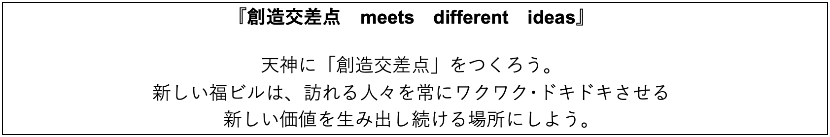 当プロジェクトでは、「創造交差点 meets different ideas」を開発コンセプトに掲げており、アジア諸国に近接する福岡の立地特性を活かし、グローバルなイノベーションハブとしてスタートアップ企業が世界とのネットワークを広げていくための創出拠点となることを期待しています。福岡のまちのさらなる活性化とアジアにおけるプレゼンス向上に向けて、共に盛り上げていきましょう。