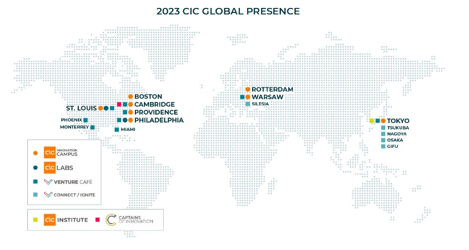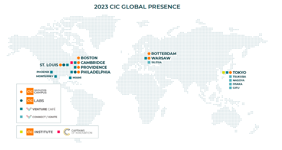 現在は、スタートアップを中心としたイノベーションに関心を持つ企業が全世界で2,300社以上入居しており、1999年の創設以来CICに入居した企業は1万社以上に及んでいます。また、2022年1年間でCIC入居企業がベンチャーキャピタル等から調達した資金は合計約7.2億ドル(約1070億円)、またそれらの入居企業のグループ企業を含めると合計約170億ドル(約2.5兆円)の資金調達に成功しています。
