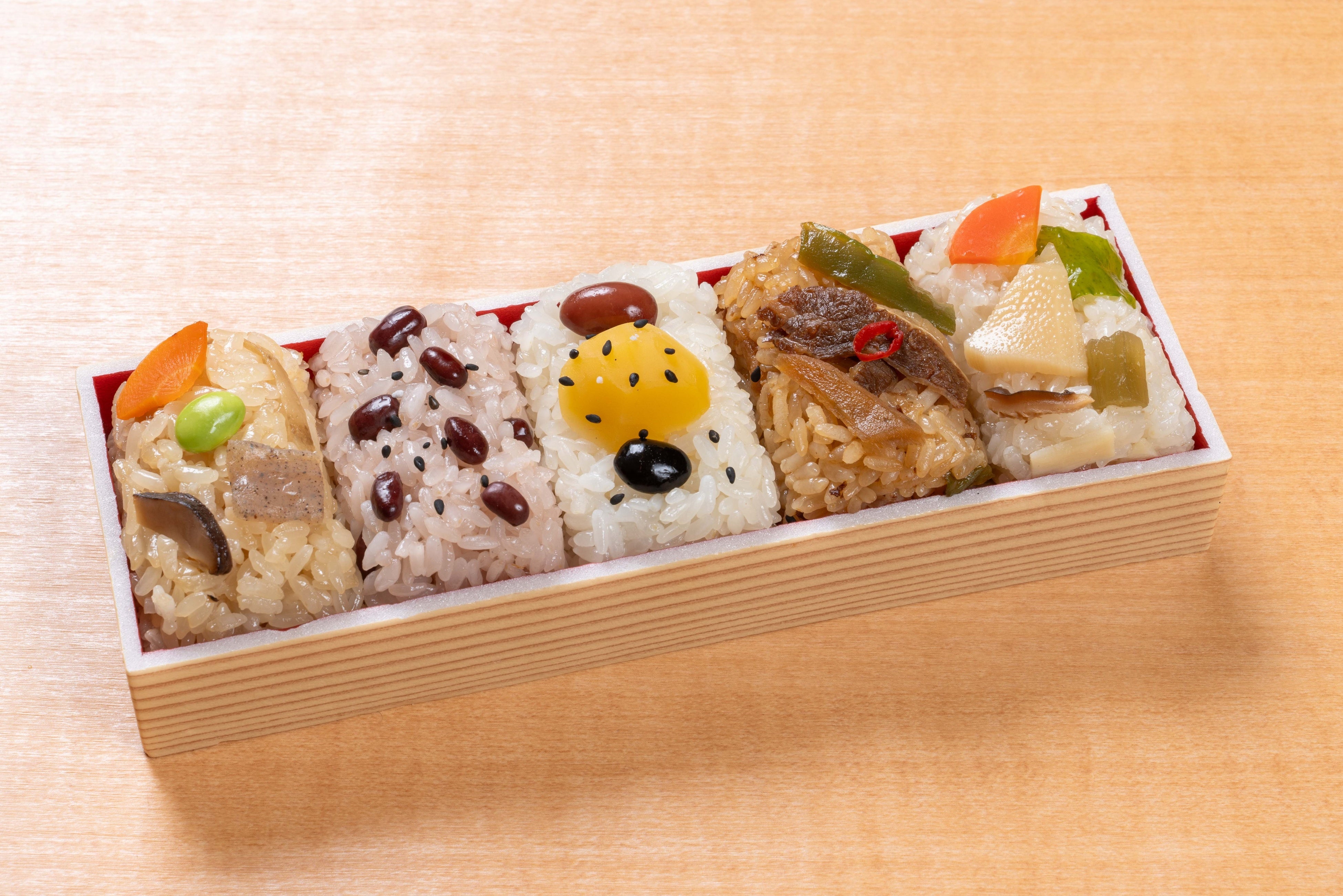 (赤飯・栗豆・五目・じゃこ・竹の子)