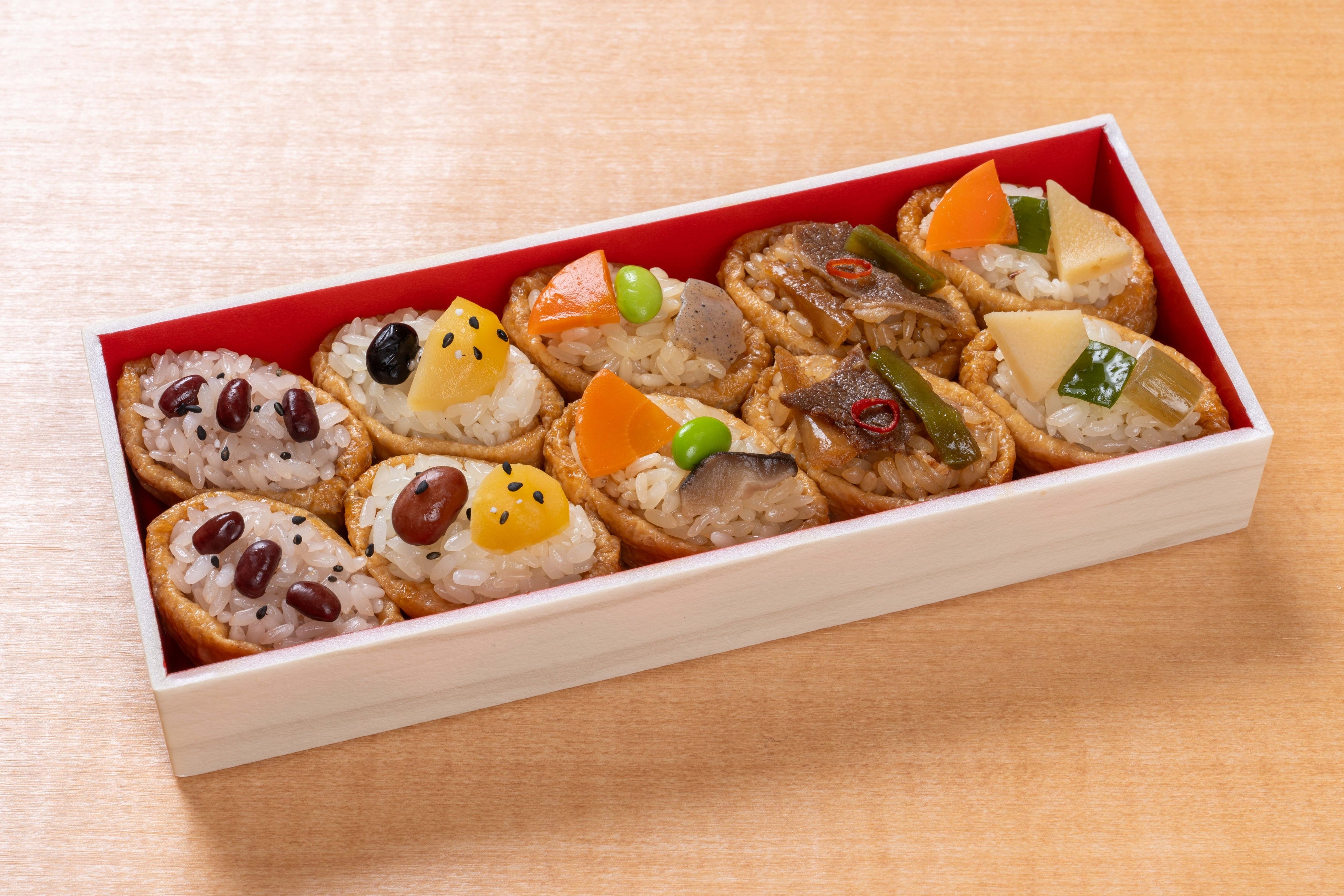 「おこわいなり」は、年間を通して人気のおこわをはじめ、旬の食材を使用した期間限定メニューをひとくちサイズの「いなり」に詰め、一度に楽しめるロングセラーメニュー。見た目も美しく、さまざまなおいしさを楽しめるメニューとして、春のイベントやお出かけ、お土産など、あらゆるシーンでお楽しみいただける商品です。