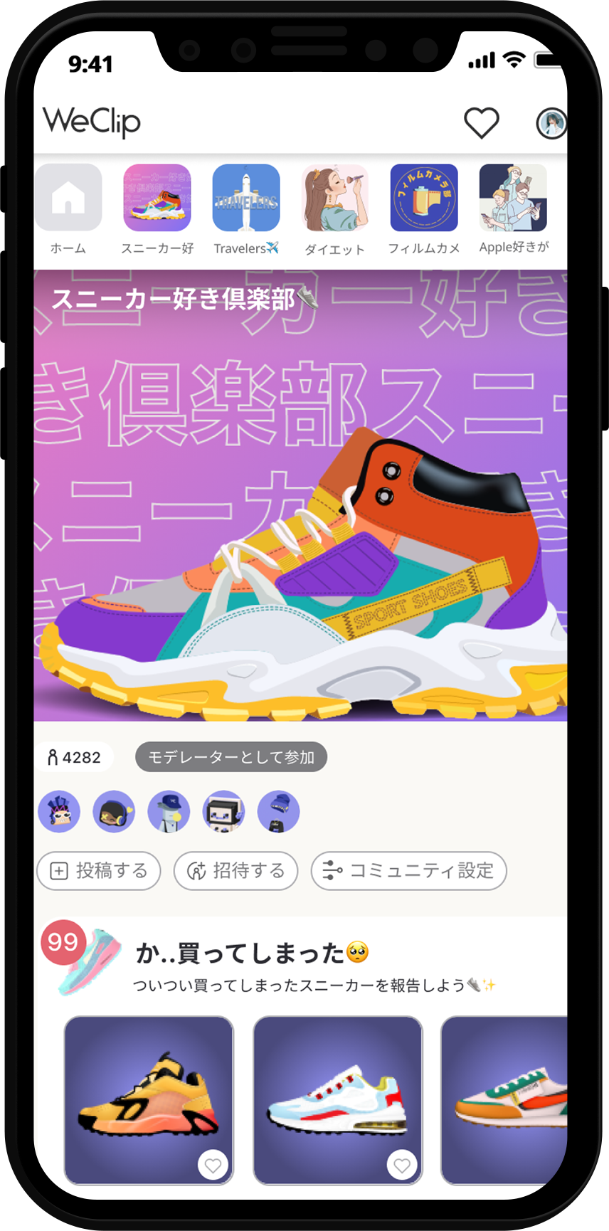 ユーザーではなく、コミュニティ単位でフォローするSNSで、各コミュニティ内のユーザーが3段階の権限に分かれているのが特徴で、良質な情報の循環や誹謗中傷への素早い対処ができ、心理的安全性の確保から、活発なコミュニティの継続が期待できます。2022年にiOSアプリβ版、2023年3月にWeClipビジネス版 FRM Dashboard( https://weclip.link/lp/biz/frm )をリリースいたしました。