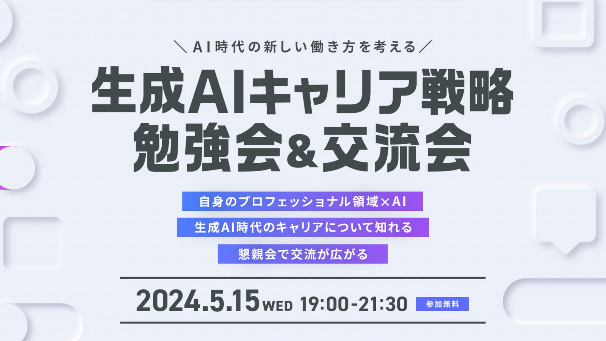 株式会社アーキタイプ(本社:東京都渋谷区、代表取締役社長:齋藤順一)は、「AI時代の新しい働き方を考える。生成AIキャリア戦略勉強会&交流会」を2024年5月15日に開催いたします。