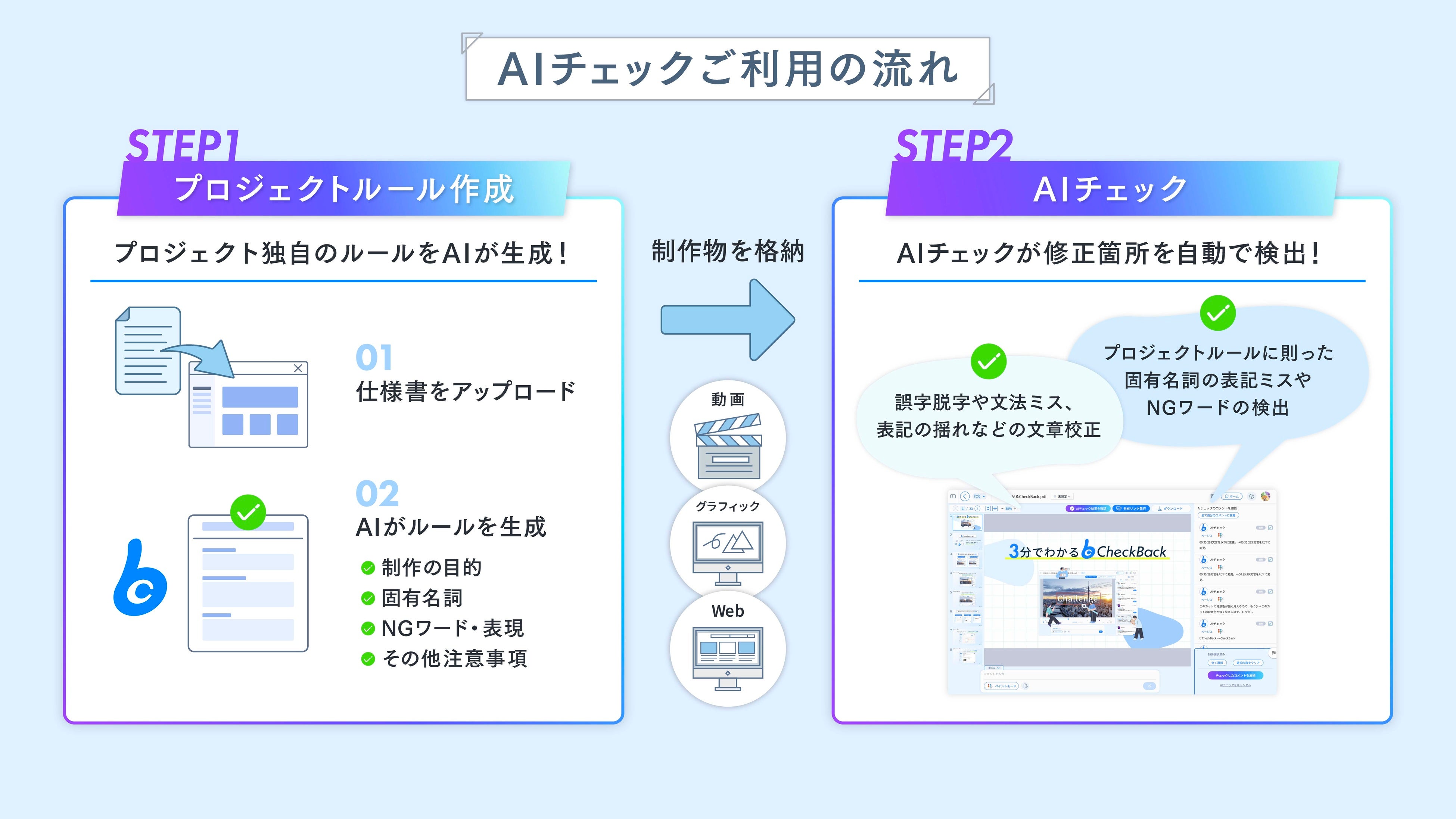 AI生成コンテンツには誤りが含まれる可能性があるため、本機能は制作物の品質と安全性を担保するためのチェック体制として活用いただけます。