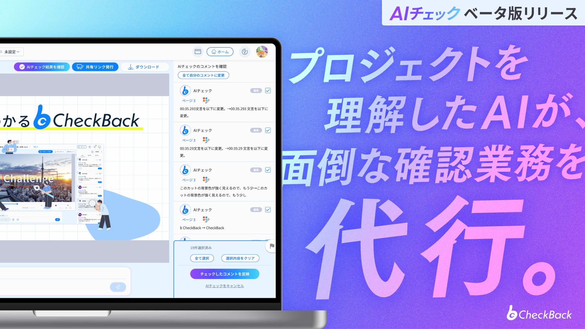 PMのためのプロジェクト進行管理ツール「CheckBack」 新機能「AIチェック機能(クローズドβ版)」を提供開始