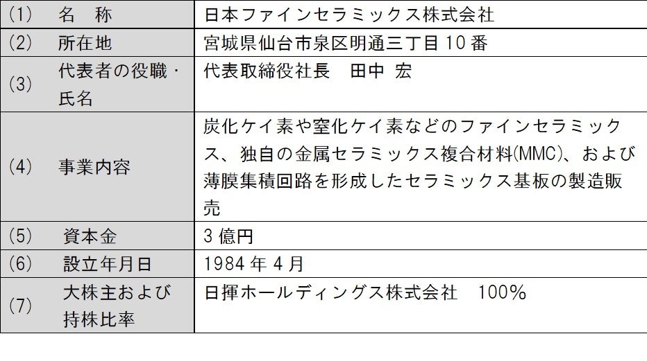 日揮ホールディングス株式会社(代表取締役会長CEO 佐藤 雅之)は、連結子会社で当社グループの機能材製造事業会社である日本ファインセラミックス株式会社(代表取締役社長 田中 宏、以下、日本ファインセラミックス)が、今般昭和電工マテリアルズ株式会社(取締役社長 髙橋 秀仁、以下、昭和電工マテリアルズ)との間で、昭和電工マテリアルズのセラミック事業(以下、本事業)譲受に関し、協議が合意に至り、2021年12月28日付で本事業の譲受に関する契約を締結しましたので、お知らせいたします。