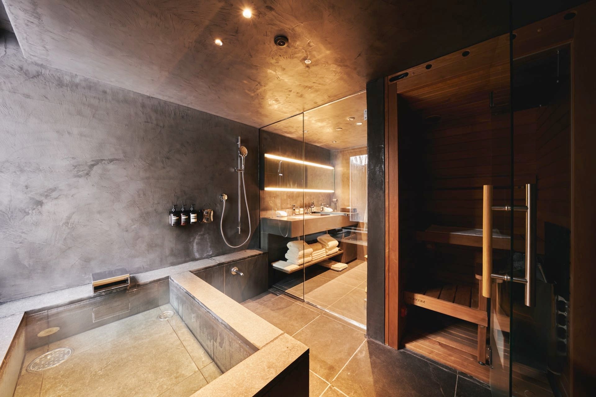 一般的に、熱を逃がしてしまうガラス素材はサウナ室において"天敵"とされていますが、ガラス面に耐熱強化ガラスを採用することで、熱を逃がさず、機能性とデザイン性の両立を実現しています。