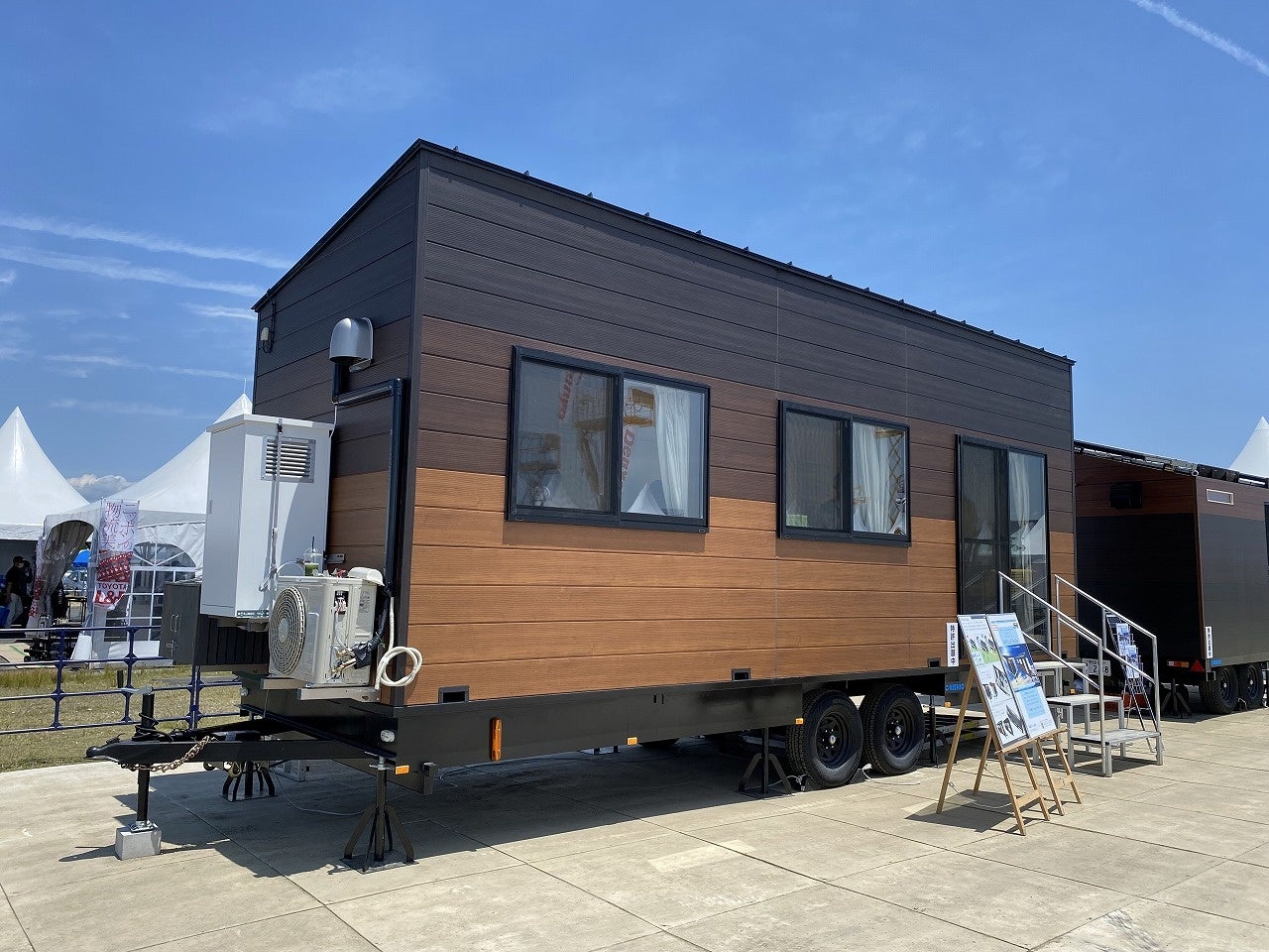 太陽光発電でトレーラー内の消費電力をまかない、空気中の水分から飲み水をつくるシステムを搭載した災害時にも活躍するトレーラーハウスを展示します。