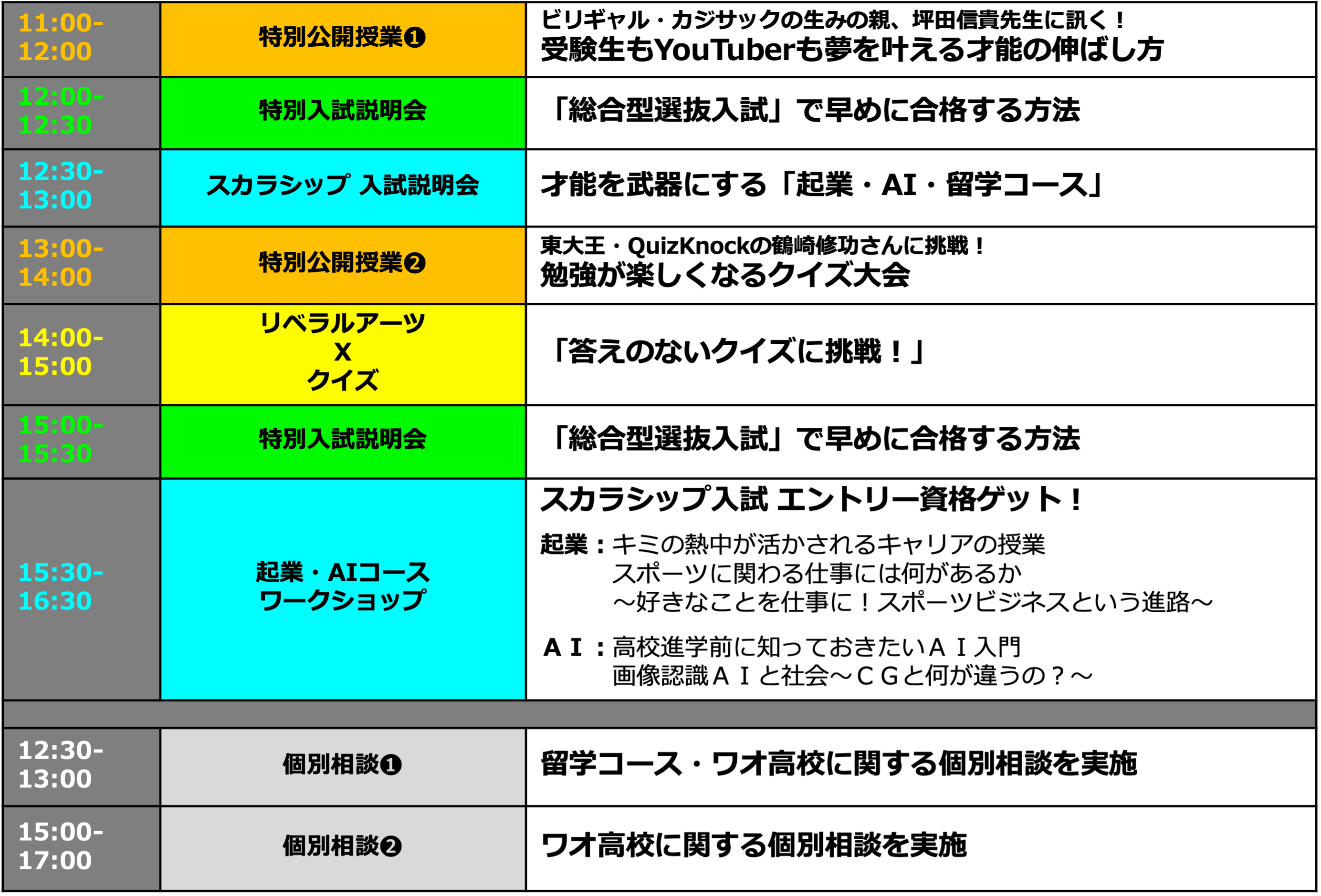 ワオ高校オープンスクール 10月 特別2大公開授業