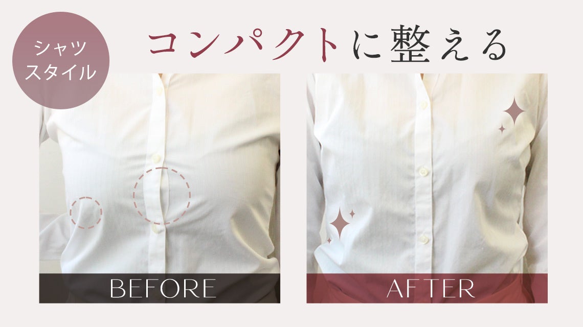 ボタンの隙間ができてしまうバストのボリュームを、独自設計のカップで分散し理想の着痩せシルエットに◎より美しいシルエットにこだわった仕様に今季リニューアルし、脇肉をスッポリと覆って着用感もアップ!