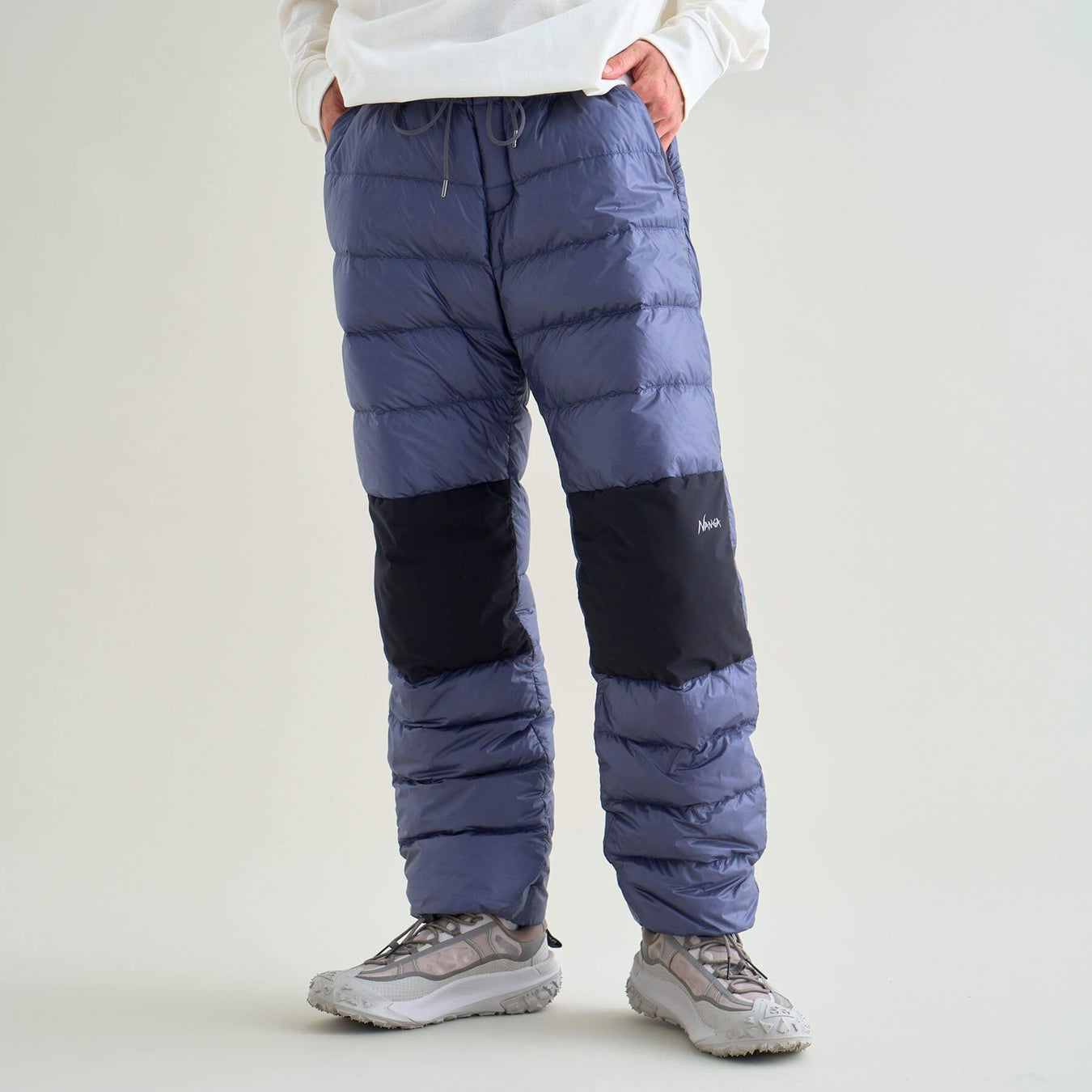 山小屋や山岳ベースキャンプでの使用を想定したダウンパンツ。シェルは極薄軽量な10Dリサイクルナイロン、膝部はストレッチ性のある生地を採用。ダウンは軽さと保温力にこだわりSPDX(860FP)を使用。別売りのコンプレッションバッグで小さく収納できます。