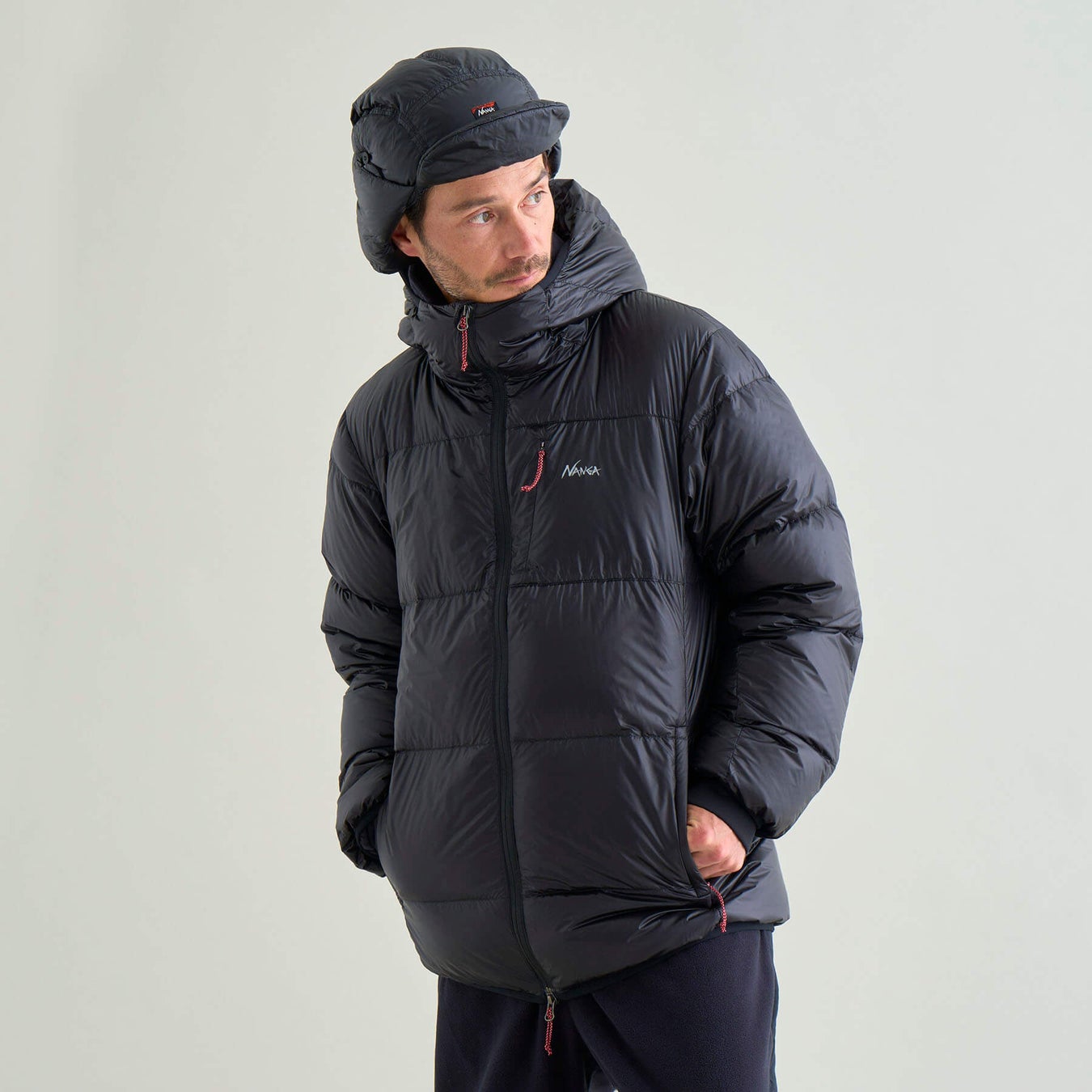 アームホールを太めに設定し、立体的なカッティングとパターンワークにより腕まわりの可動域を確保。左前身頃の内ポケットにジャケットを収納できるパッカブル仕様。 ロッジやベースキャンプでの着用をコンセプトに、軽さと保温力にこだわっています。