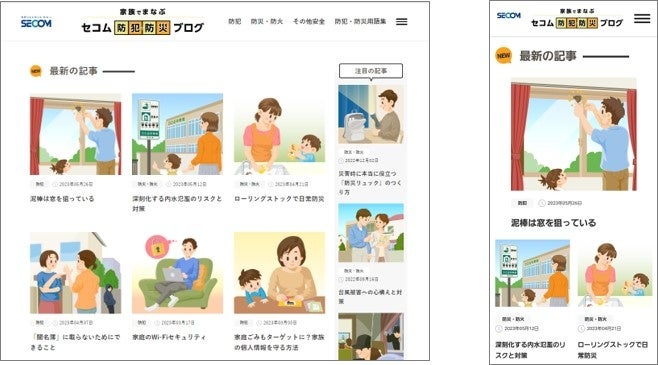 リニューアルした「セコム防犯・防災ブログ」(左:パソコン画面イメージ、右:スマートフォン画面イメージ)