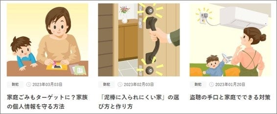 セコムは「安全・安心」を社会に広めて発展に貢献することも役割と考え、防犯・防災意識の啓発を図るさまざまな活動を行っています。「セコム防犯・防災ブログ」における情報発信もその一環で、この他に安全啓発のウェブサイト「子どもの安全ブログ」「女性のためのあんしんライフnavi」などの運営を通じて読者層に合わせた対策を紹介しています。