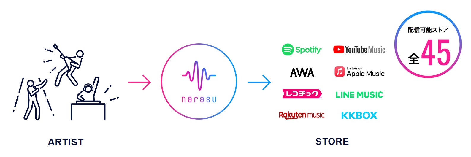 2020年12月8日、国内初のサブスク型音楽配信代行サービス「narasu(ナラス)」のサービスを