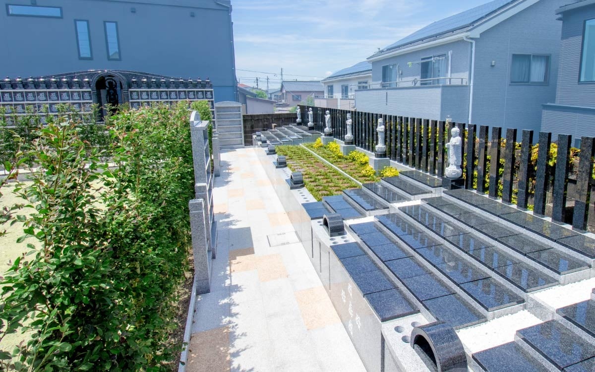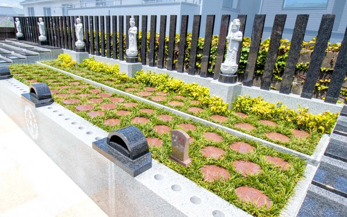 一般的な樹木葬と異なり、庭園風の明るく開放的なお墓です。墓標に樹木ではなく「石の墓誌」を使用しており、故人が眠る場所が分からなくなることがありません。