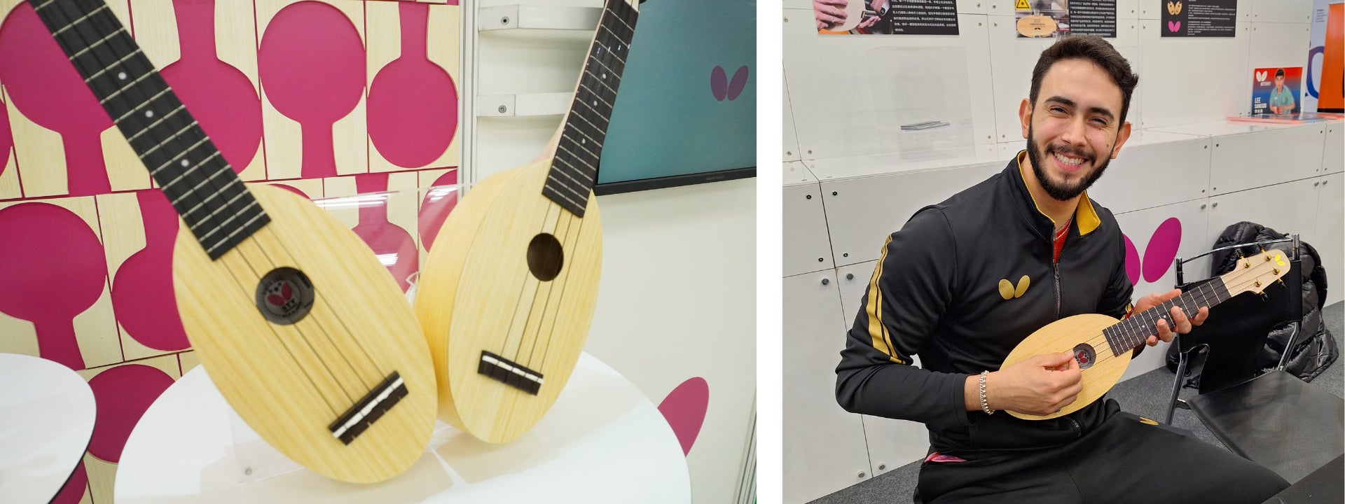 この企画は、三ッ葉楽器の工場を訪問させていただいたことをきっかけにスタート。ラケットの廃材を有効活用したいと考えるバタフライと、音色にこだわる三ッ葉楽器による協働での試作検証の末、2023年に「バタフライ オリジナル ウクレレ」ができあがりました。