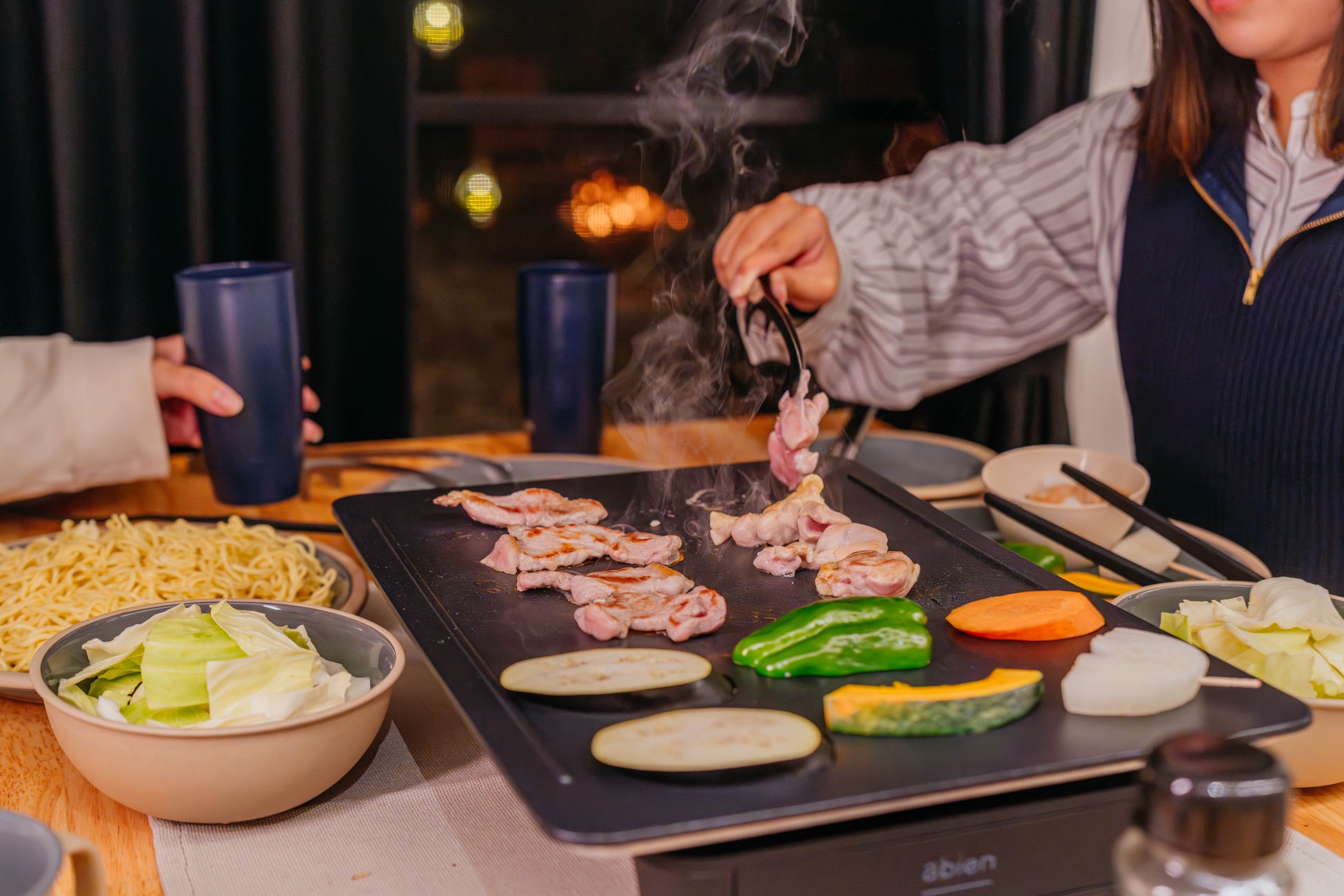 ひるがのエリアは飛騨牛や野菜など美味しい新鮮食材がたくさんあることも魅力のひとつ。「冬でも大自然を眺めながらBBQ感覚で食事を楽しんでいただきたい」という想いをもとに、屋内でも使用できる『abien MAGIC GRILL』が導入されました。