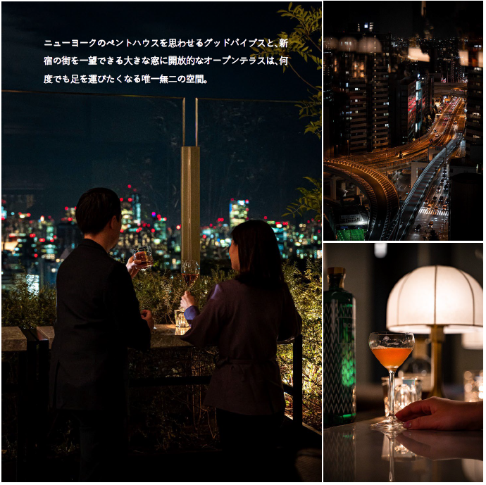新宿の喧騒さえも心地よさに変わる、非日常のひとときに身をゆだねられる場所。ごきげんで最高にかっこいい、エクスクルーシブな体験をお届けします。