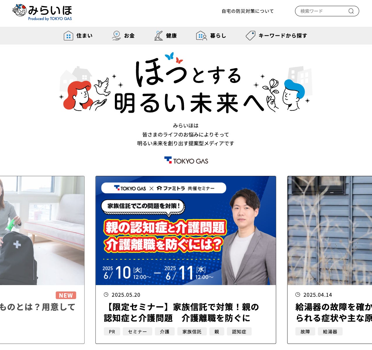 一方、東京ガスは、エネルギー供給という日々の暮らしに欠かせないインフラサービスに加え、シニア世代の多様なニーズに応える「みらいほ」を展開し、お客様の安心な暮らしに寄り添っています。