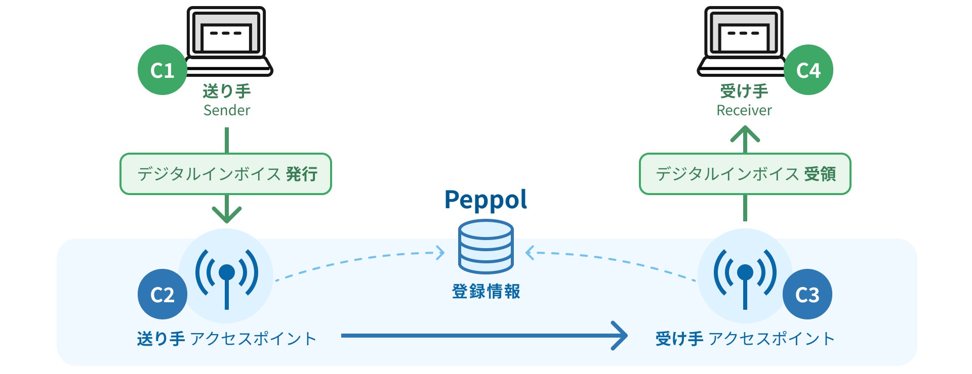 Peppolネットワークでデータを送受信するには、認定事業者が提供するアクセスポイントを利用する必要があります。ファーストアカウンティング社は、日本におけるPeppolサービスプロバイダーとして、デジタル庁から認定を受けています。