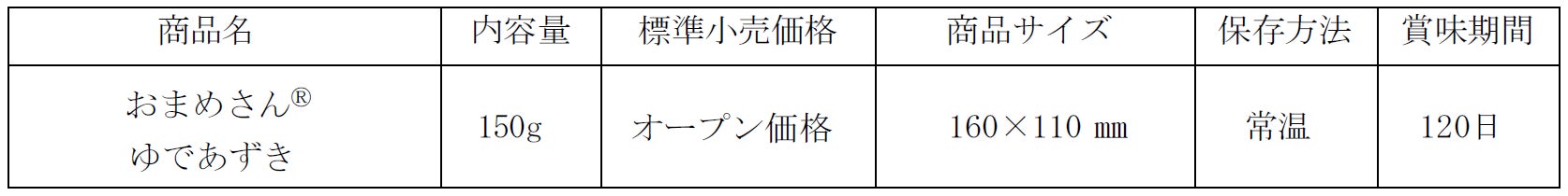 このようなニーズの高まりを受け、この度、ロングセラーの「おまめさんⓇ」ブランドの新たな仲間として「おまめさんⓇ ゆであずき」を新発売いたします。「おまめさんⓇ ゆであずき」は小豆そのものの風味を生かして、ほんのりとした甘さに仕上げた、煮豆メーカーならではのゆであずきとなっています。