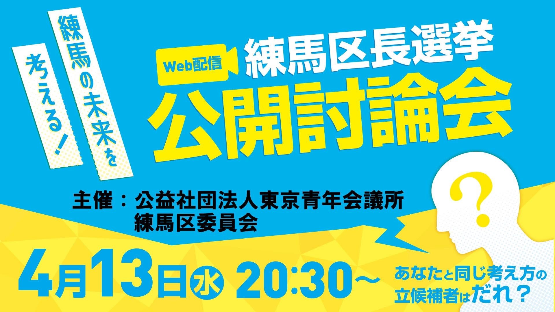【4月13日(水)午後8時30分~生配信】練馬を決める!政策を知る!!練馬のトップを決める練馬区長選挙に伴う公開討論会を実施