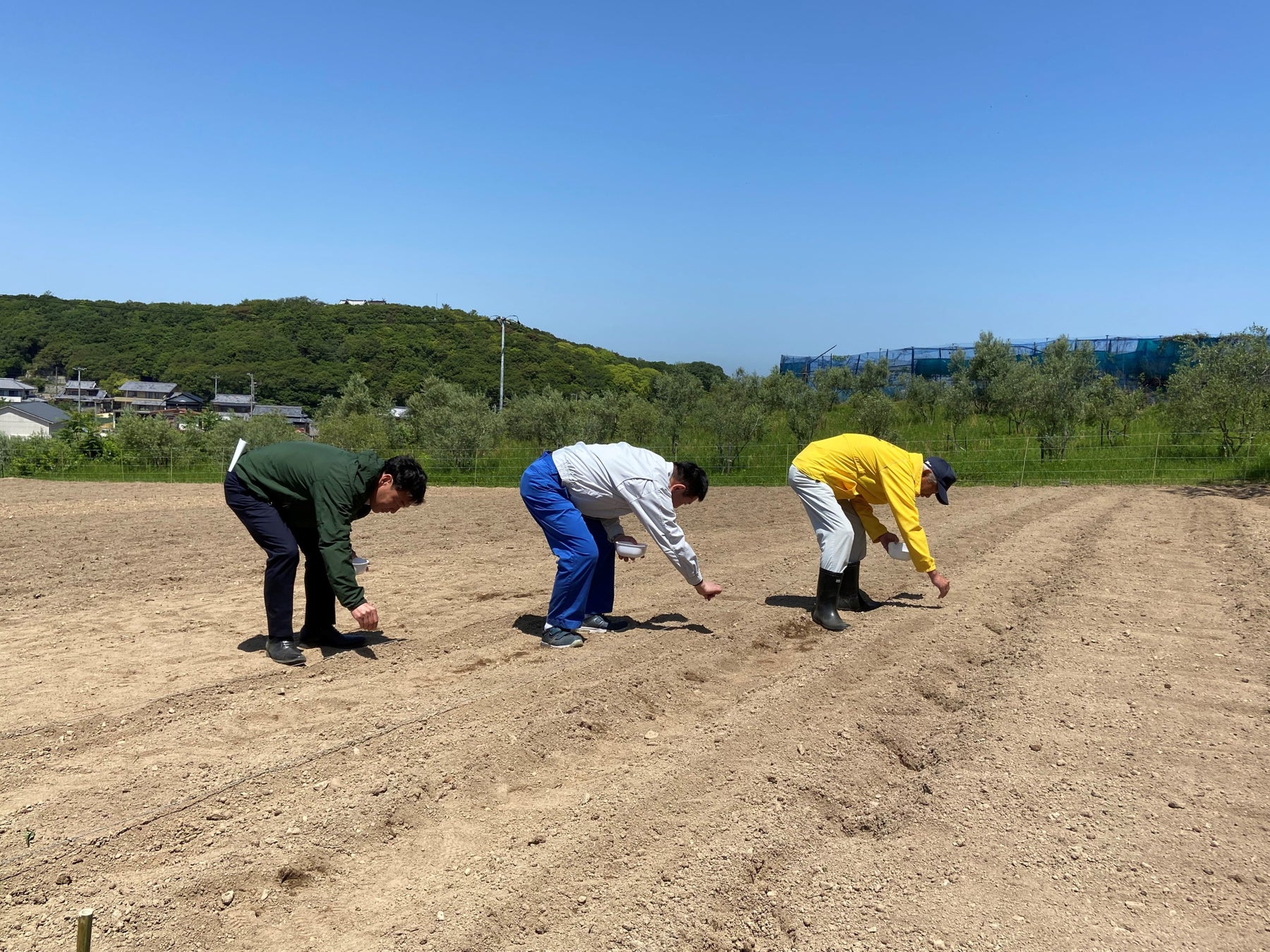 プロジェクトの発足を記念し、かどや製油と小豆島土庄町は5月10日(金)にメディアイベントを実施、香川県小豆島の土庄町でごまの種まきをする様子を初めて公開しました。