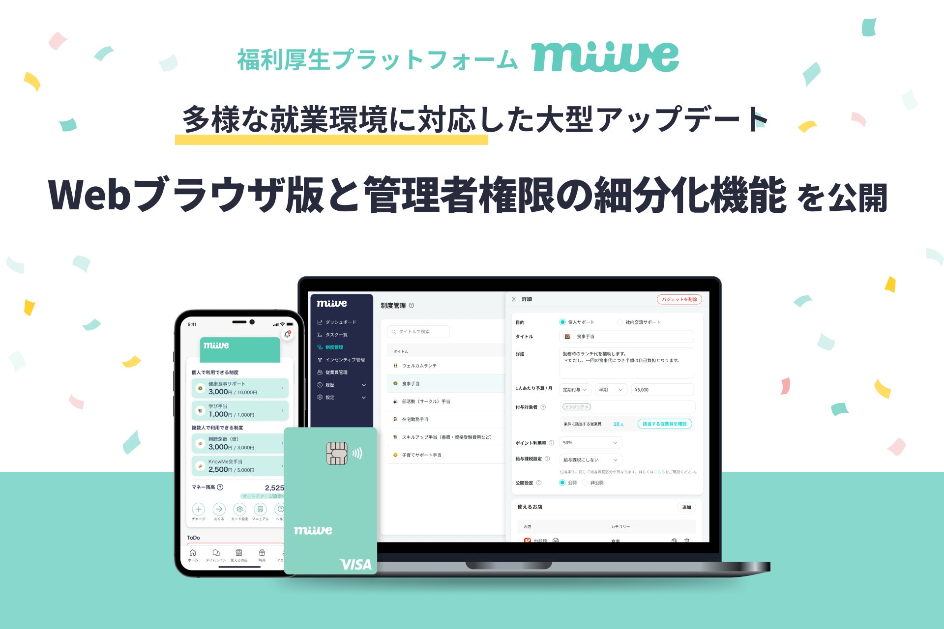 福利厚生プラットフォーム「miive」、Webブラウザ版と管理者権限の細分化機能を公開