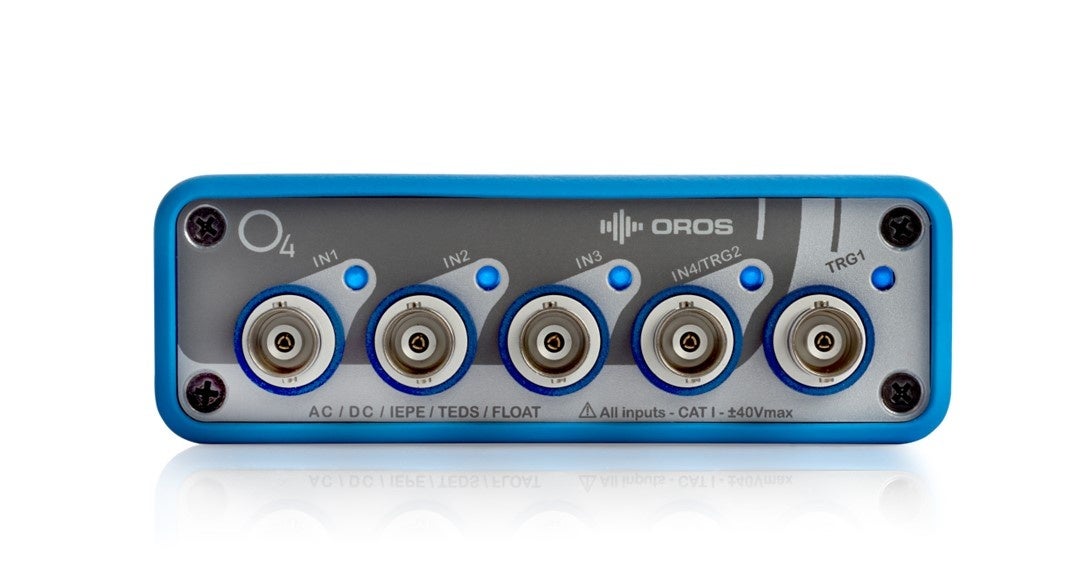 東陽テクニカでは、振動・騒音解析分野においてさまざまな計測ソリューションを展開しており、なかでもOROS社製「OR34」は、FFT演算をソフトウェア内で完結しリアルタイムに分析することができることから国内で多く納入しています。今回新たに発売する「O4」は、「OR34」の後継としてその性能を継承し、重さは約半分と軽量化、さらに小型となりました。入力電圧レンジや最大サンプリング周波数などはさらに幅を広げ、音振動解析に求められるハードウェアスペックと解析手法に対応しています。「OR34」よりも低価格を実現し、USBバスパワー駆動、ケーブル一本でPCと接続でき、専用解析ソフトウェア「NVGate」にて、すぐに測定業務を開始できます。