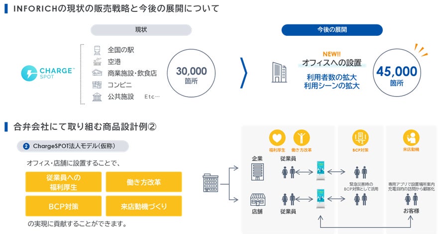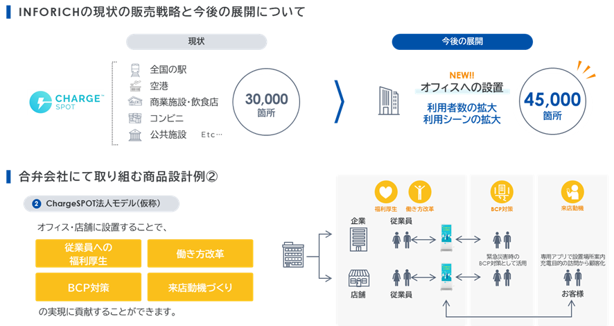 そのような状況の中、当社は当該サービスに対するコンサルティングや、当該サービスも含めたChargeSPOTのマーケティングとセールスにおける企画を行い、合弁会社の総販売代理店として事業を展開することで既存事業とのシナジー効果を含めた収益機会の拡大を見込んでおります。