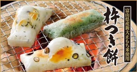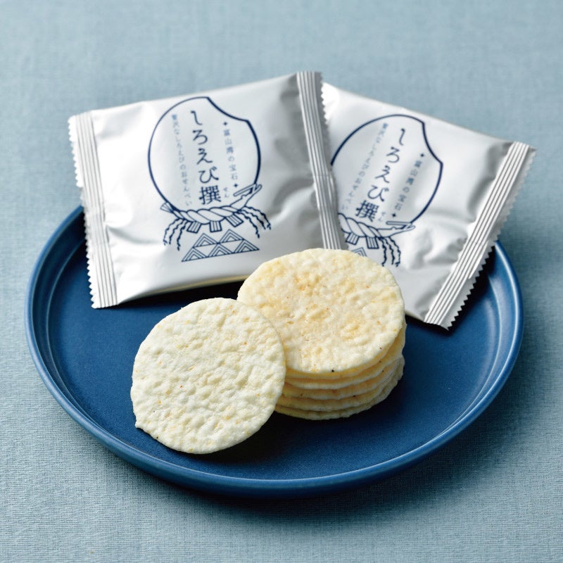 豊かな海が育んだ富山湾の宝石しろえびと富山県産米100%を使って香ばしく焼き上げた「しろえびせんべい」や、昔懐かしの6種類の個性的なあられ、かきもち、せんべいをひと包みにした「こきりこ」など、子どもから大人まで喜ばれるおやつ、ギフト・お土産商品などを幅広く販売しています。