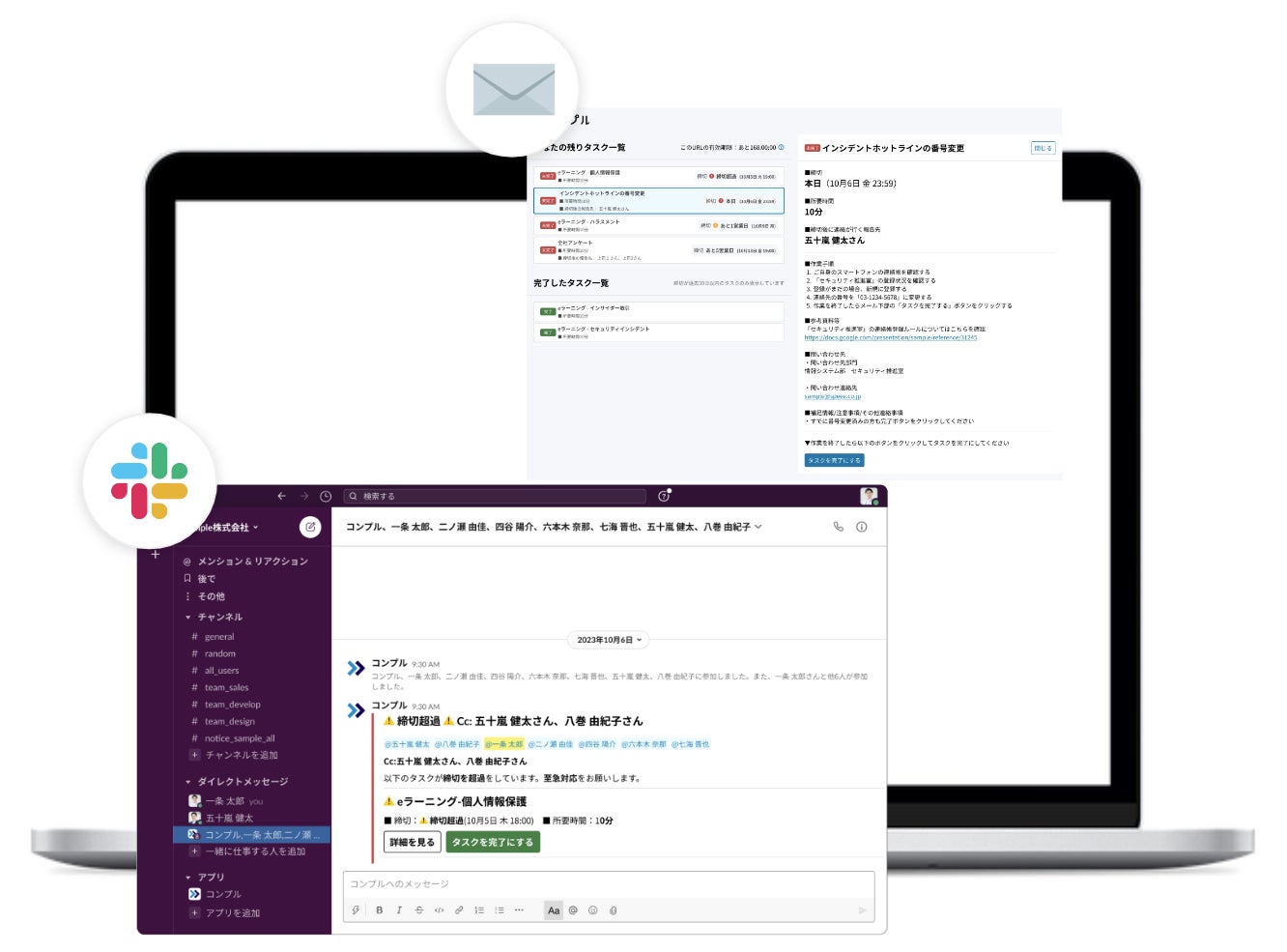 『コンプル』は、社内でのタスク依頼やその督促に関わる業務を自動化するSaaSです。
