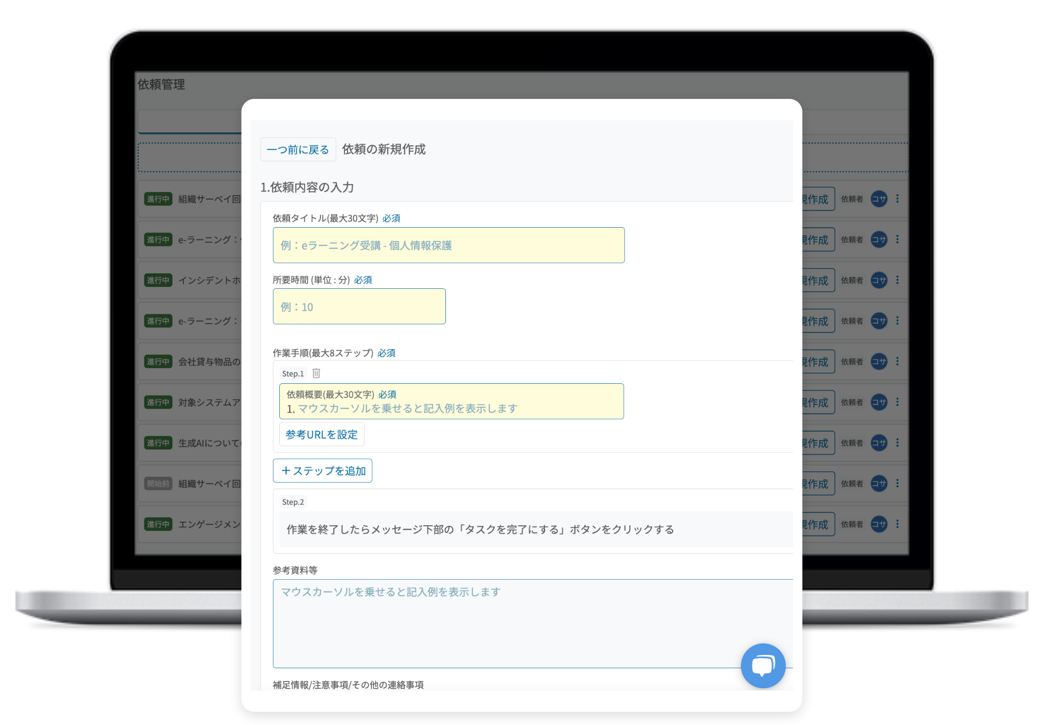 ワンクリックで依頼を完了。あとは締切に合わせて全自動でリマインドします。