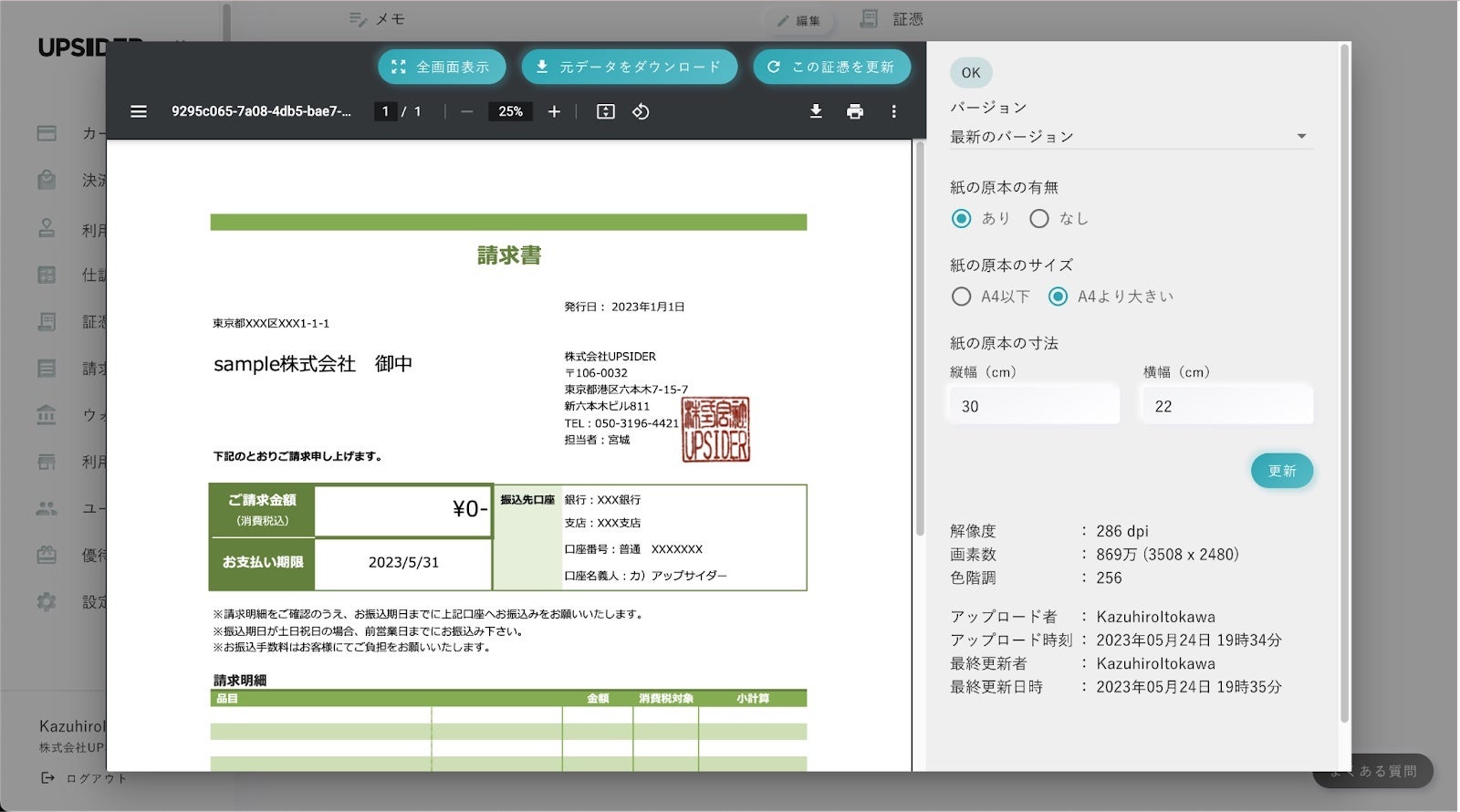 UPSIDER、電子帳簿保存法に対応 -- 証憑の紙の原本回収・保存が不要に