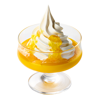 芳醇な香りと甘みが特徴のアルフォンソマンゴーにココナッツが程よく感じられるプリンです。ソフトクリームと甘酸っぱいパイナップルソースをあわせた、夏にぴったりなスイーツです。