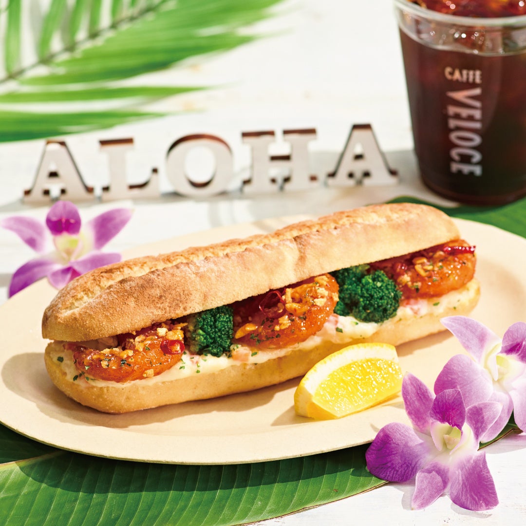 食べて、一瞬でハワイ気分! 『カフェ・ベローチェ』、「一瞬でハワイアン」フェアを7月5日(水)より開催~ 人気のガーリックシュリンプが入った焼きたてサンドなど、3つのハワイアングルメが新登場! ~