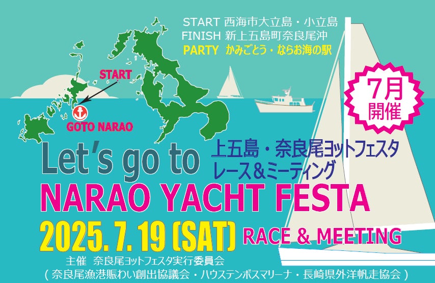 上五島・奈良尾ヨットフェスタ実行委員会(奈良尾漁港賑わい創出協議会、長崎県外洋帆走協会、ハウステンボスマリーナ)は、2025年7月19日に、本土と新上五島町を結ぶ初めてのヨットレースとして、「第1回 上五島・奈良尾ヨットフェスタ 2025」を開催します。
