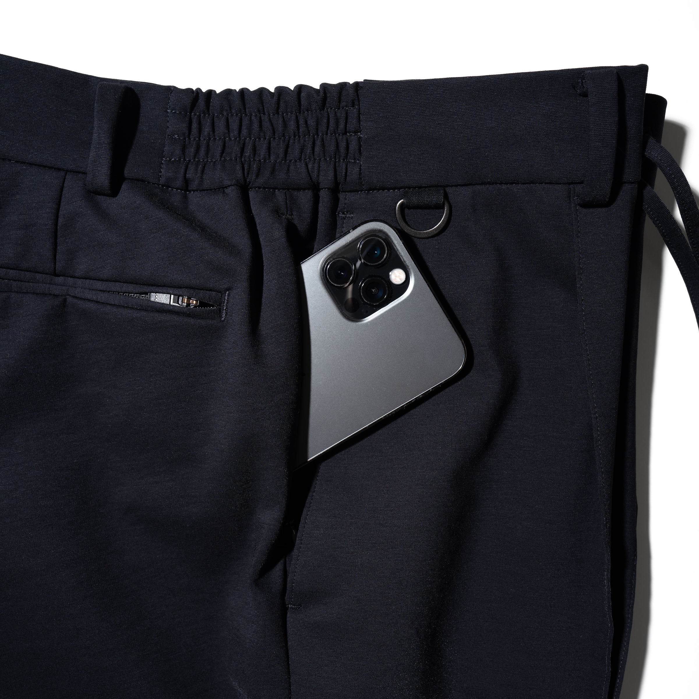 スマートフォン専用ポケットも配置し、スムースな出し入れも可能にしています。