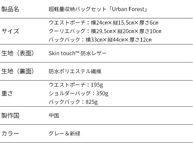 デザイン美&耐水性!超軽量収納バッグシリーズ「Urban Forest」