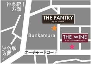 近隣には東急百貨店が運営する「THE WINE by TOKYU DEPARTMENT STORE」がございます。世界中から厳選したワインを取り揃えておりますので、ワインとおつまみのペアリング利用など、ぜひ当店と併せてご利用くださいませ。